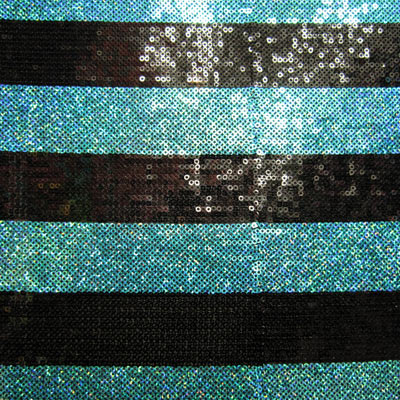 Turquoise/Black Sequins on Black 2 Way Stretch Poly Spandex
