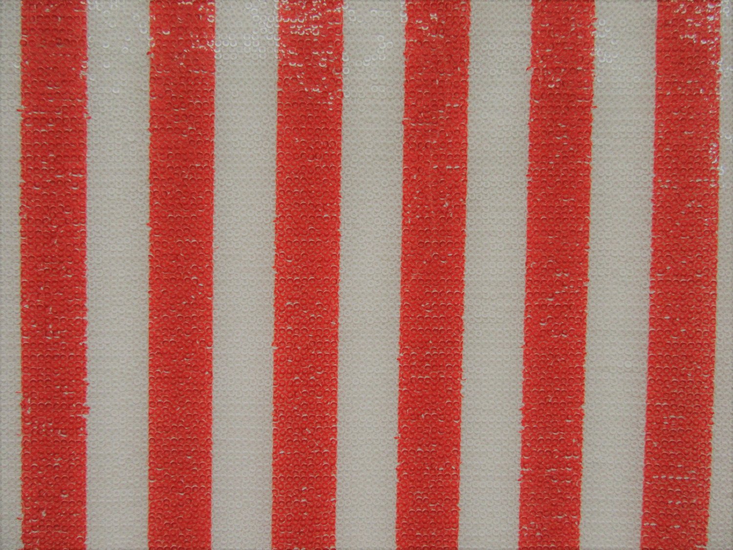 2 MM SEQUINE RED AND WHITE STRIPE PATTERN SEWN ON 100 % POLTESTER MESH . USAGE : COSTUME , DANCE , DRESS FOR SPECIAL OCCASION.