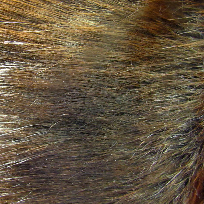 NON STRETCH BLACK/BROWN WOLF FAUX FUR SEWN ON 50% ACRYLIC AND 50% POLYESTER.